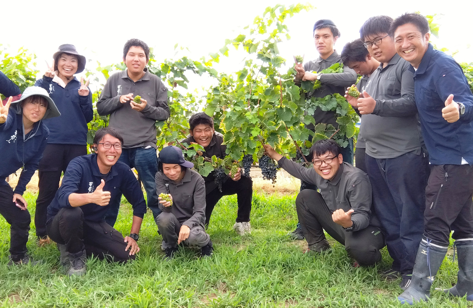 伊勢ワインの造り手は5名の職員(健常者)と15名の障がいのある方です。この20名が所属するのが「ジョブスタジオ伊勢」です。伊勢市在住の障がいのある方がワインぶどうやブルーベリー、いちごやサツマイモを栽培しワインやジャム、干し芋を製造してくれています。単身で作業することは難しいため、伊勢ワインの職業指導員がそばについて作業をフォローしながら進めていきます。障がいのある方の地域での暮らしを豊かにし、同時に地域コミニティーに送り出す事を目的とする、それがジョブスタジオ伊勢です。